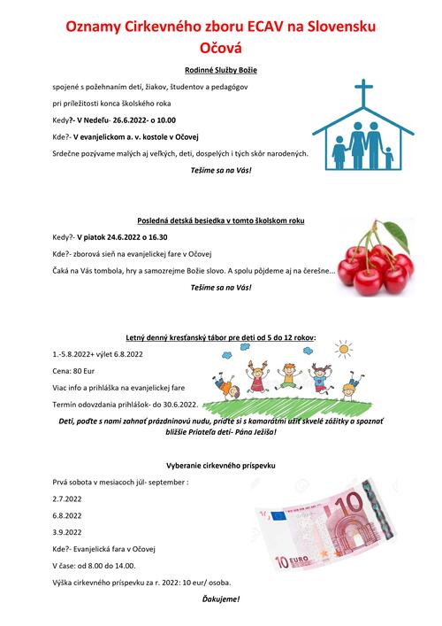 Oznam - Služby Božie 06.03.2022